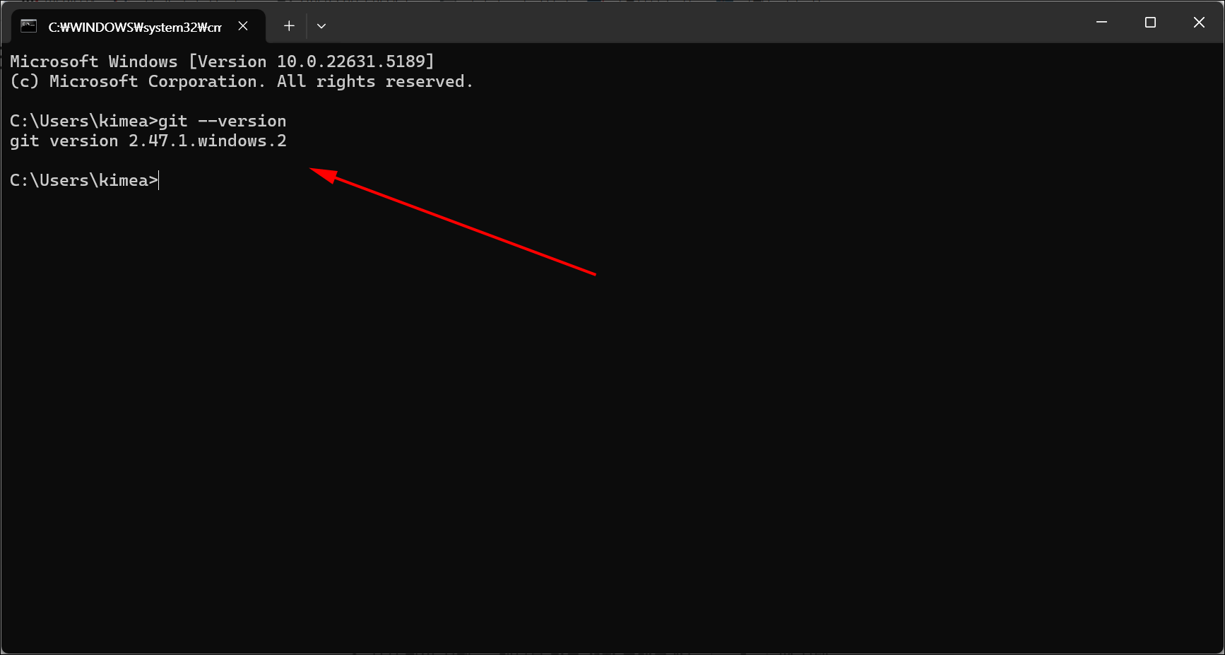 - 설치 후 cmd에서 다시 git --version 확인