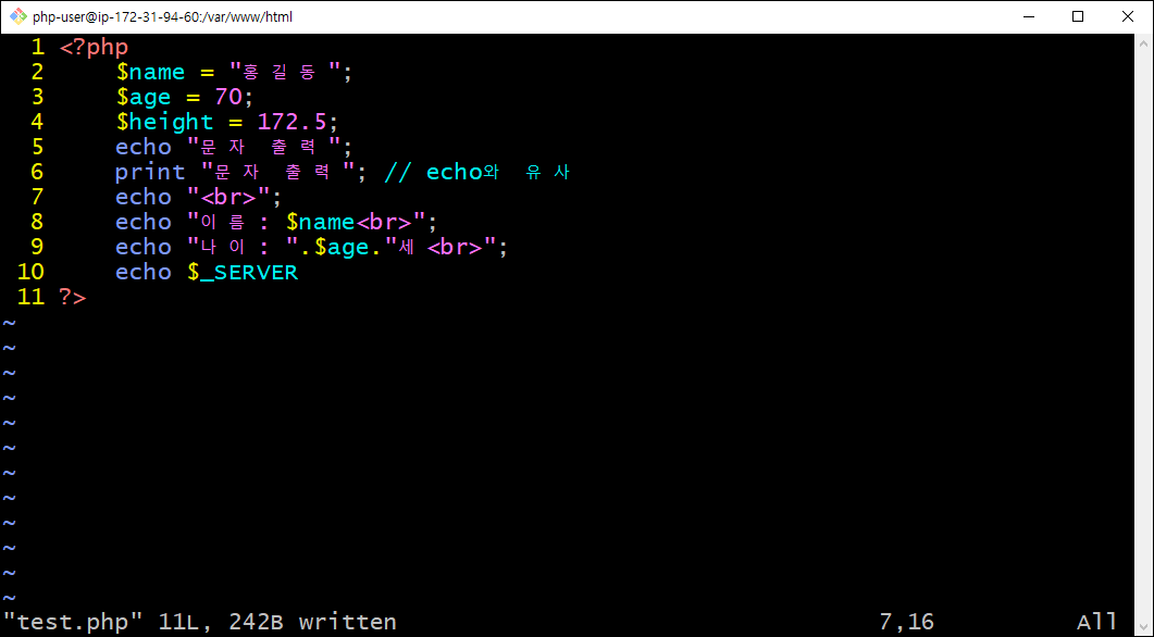 | 문자열 연결 | "나이: ".$age."세" | 문자열과 변수를 . (점)으로 연결 |