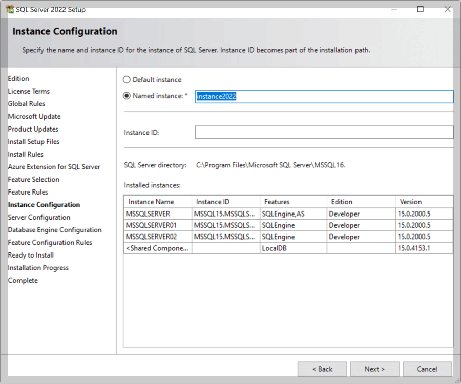 이유: 데이터베이스 엔진 외에 어떤 기능(예: Analysis Services, Reporting Services 등)을 설치할지 결정해야 합니다. 또한 인스턴스 이름 및 서비스 계정 등의 기본 설정이 중요합니다.